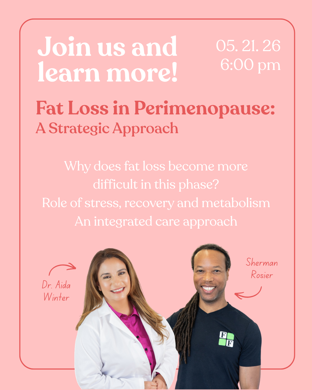 Join Dr. Aida Winter and Sherman Rosier at Fit & Functional (Northside) on Thursday, May 21st at 6:00pm. They will be discussing Fat Loss in Perimenopause, why it is more difficult, the of role stress, recovery and metabolism and demonstrate an integrated care approach.